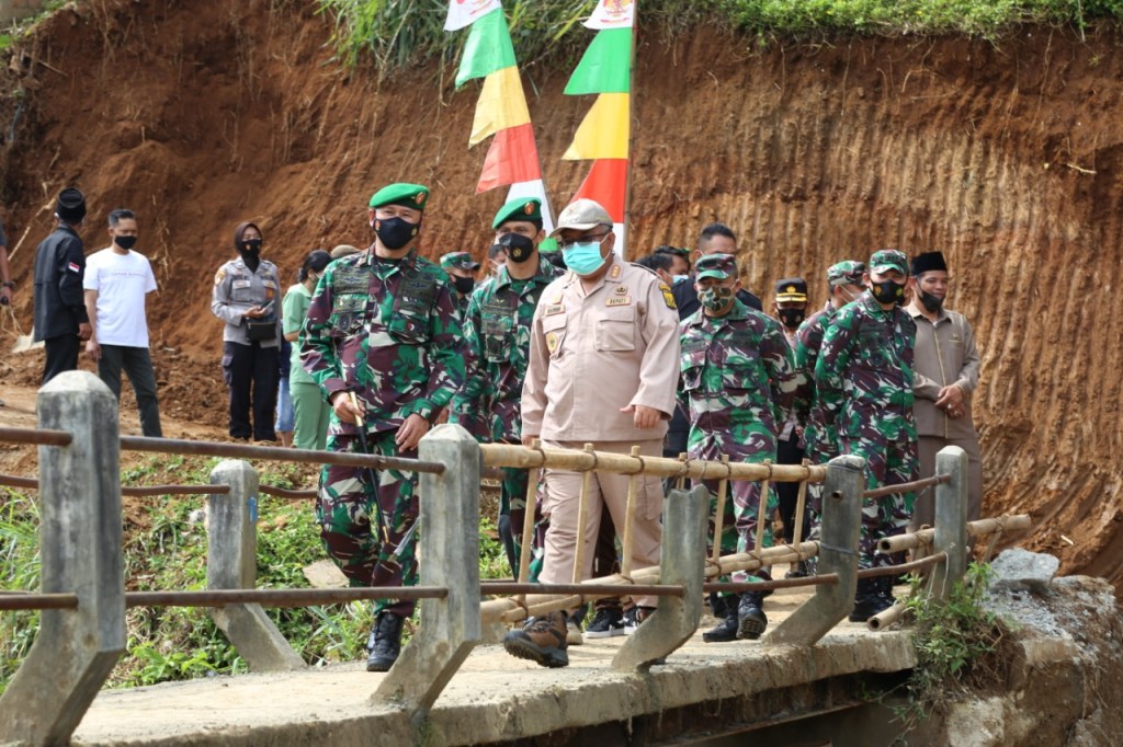 Dalam kunjunganya, Danrem didampingi Dandim 0607/Kota Sukabumi beserta Bupati Sukabumi meninjau beberapa titik pengerjaan fisik antara lain Pelebaran jalan, Rumah Tidak Layak Huni (RTLH), Pembuatan jembatan penghubung antar desa Sundawenang dan desa Palasari dan Posko Covid-19.
