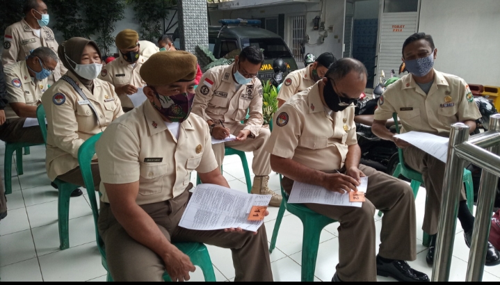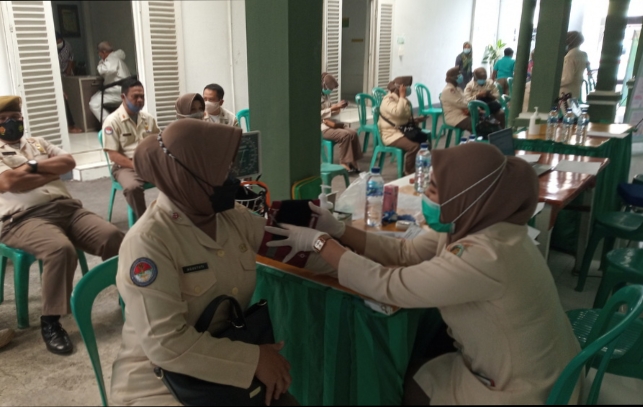 Sebelum dilakukan penyuntikan vaksin, terlebih dahulu dilakukan Cek up oleh tim vaksinator Rumkit Pangrango, dari Jumlah PNS dari Kodim 0607/Kota Sukabumi.